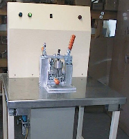 Component testing machine designed, constructed and commisioned by Kimson for testing for casting porosity in oil filter cartridge mounting adaptors used in the production of engines for the Mitsubishi Lancer.